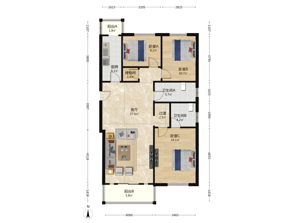 建筑面积:118.41㎡